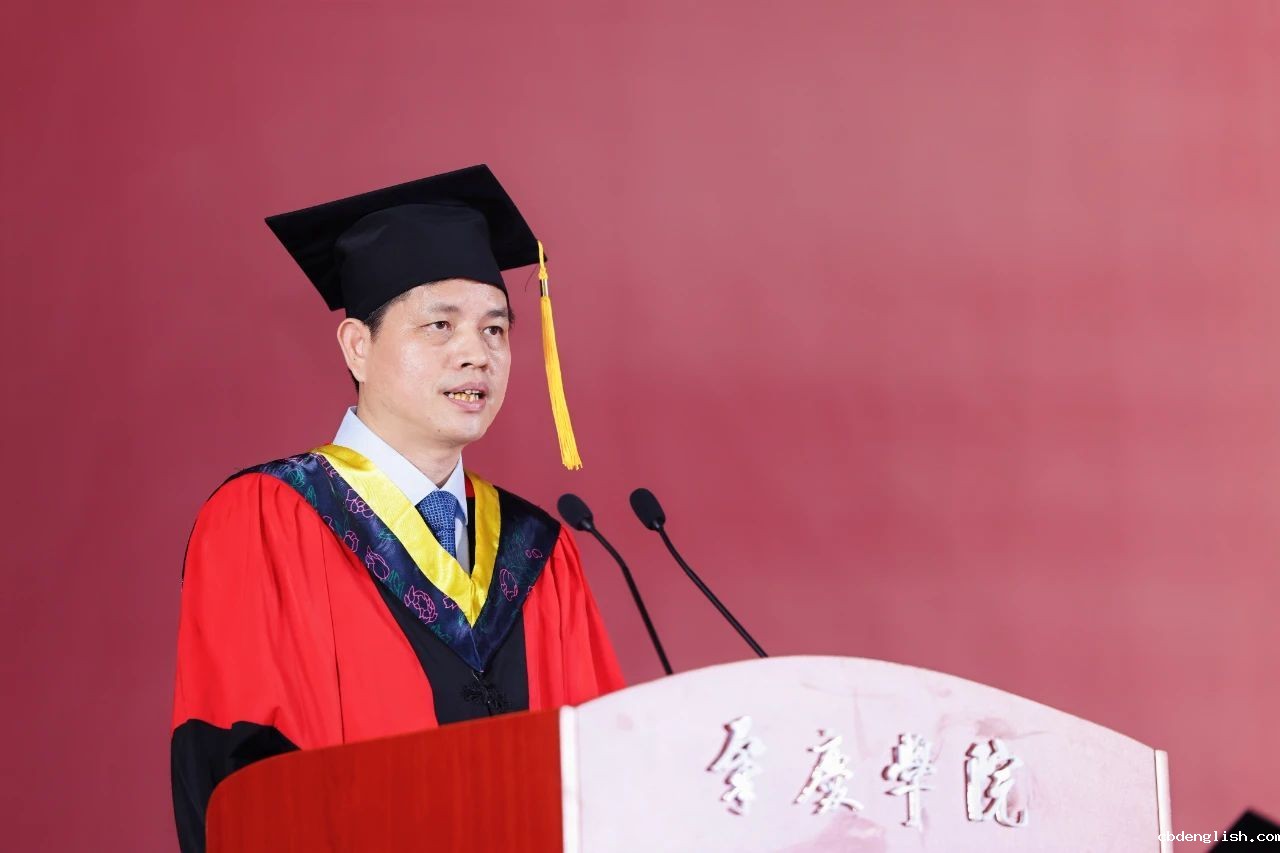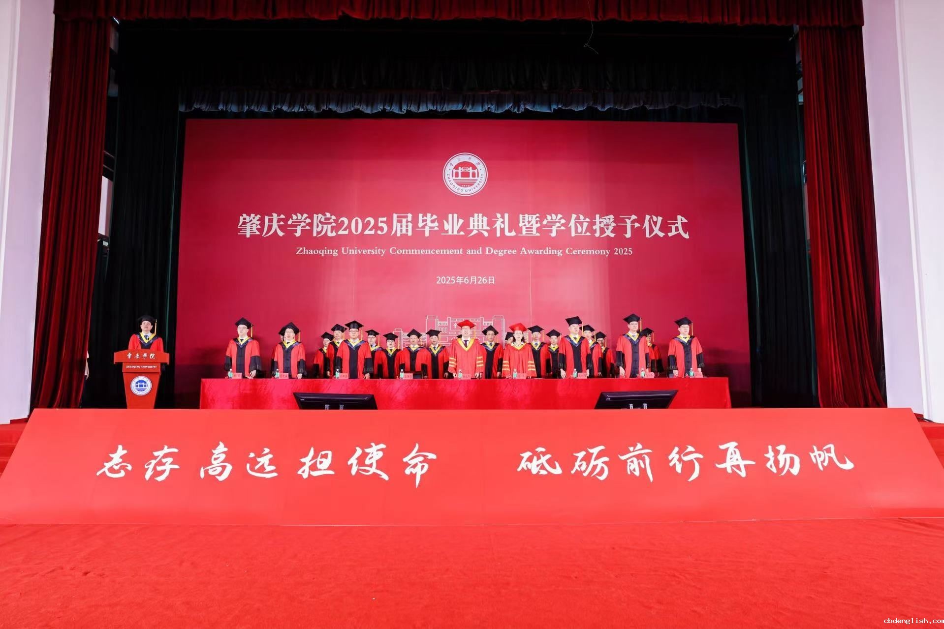 “要以厚德为基、以明智为灯、以博学为翼、以力行为本。”毕业生代表、文学与传媒学院本科生吴培桦表示,将带着母校赋予的底气,做知行合一的践行者,做砚园精神的传承者,做新时代的破题者。“每一次跨越,都是成长。每一次抵达,都是重新出发。”教师代表、经济与管理学院李华军勉励即将毕业的砚园学子,要充满敢做善为的干劲,保持乱云飞渡的从容,拥有欲穷千里的志向。“离校后,母校的关怀、祝福从未断线。恩师的指点、同窗的鼓励、砚园人的自信,都是我的加油站。”校友代表、2008届音乐学专业毕业生、肇庆市颂德学校校长梁瑞芳将心中的“热爱”与“执着”娓娓道来,向站在新坐标上的毕业生们分享自己的心得。
